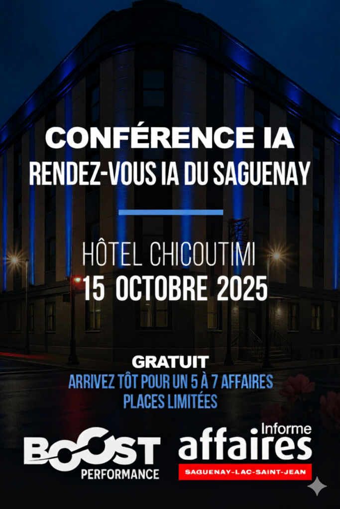 Informe Affaires, en collaboration avec Boost Performance, vous invite à la 5e conférence gratuite sur l’intelligence artificielle, dans le cadre des Rendez-vous IA du Saguenay–Lac-Saint-Jean.