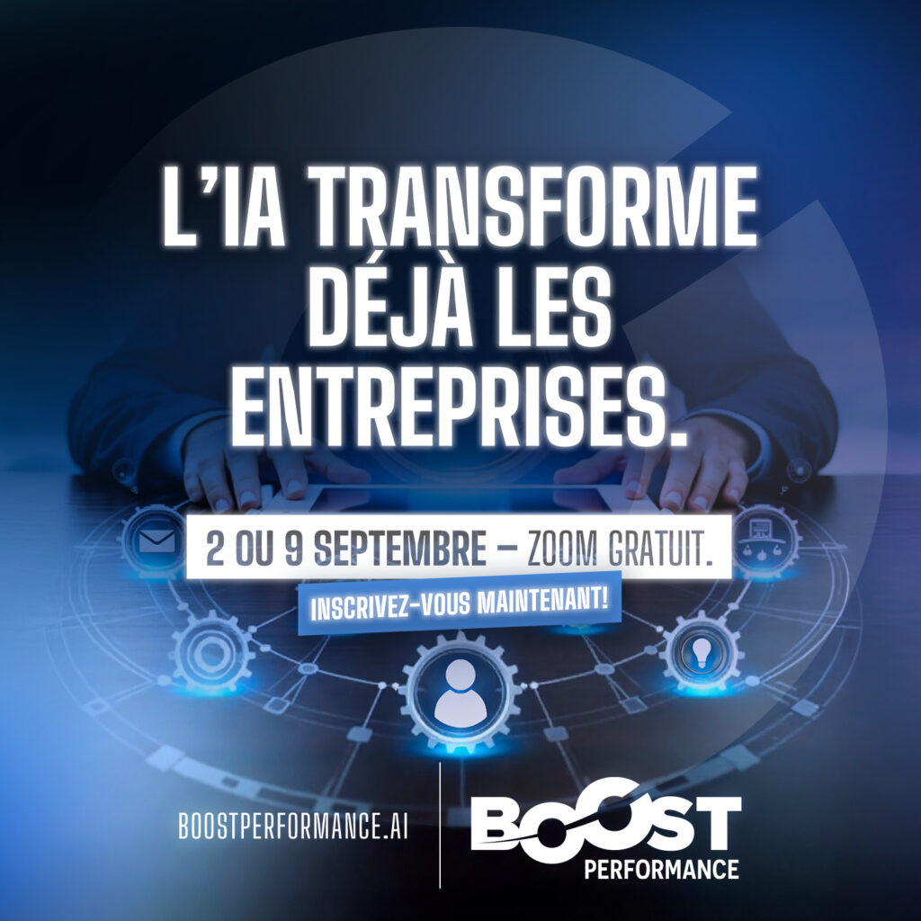 Chez Boost Performance, nous organisons des Bootcamps IA – Outils : deux journées de formation intensives pour apprendre à exploiter pleinement l’intelligence artificielle générative.